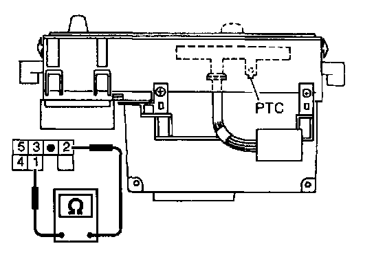 The PTC is built into the control unit. It has a variable resistance which changes according to the set temperature. This resistance is connected to the temperature control lever.