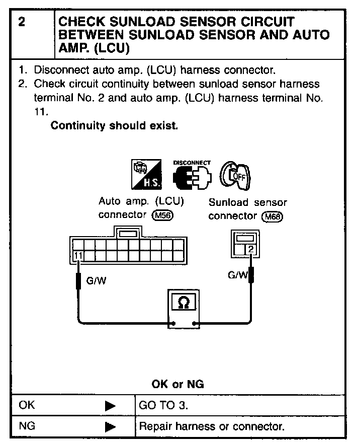 2. Check Sunload Sensor Circuit Between Sunload Sensor And Auto AMP.(LCU)