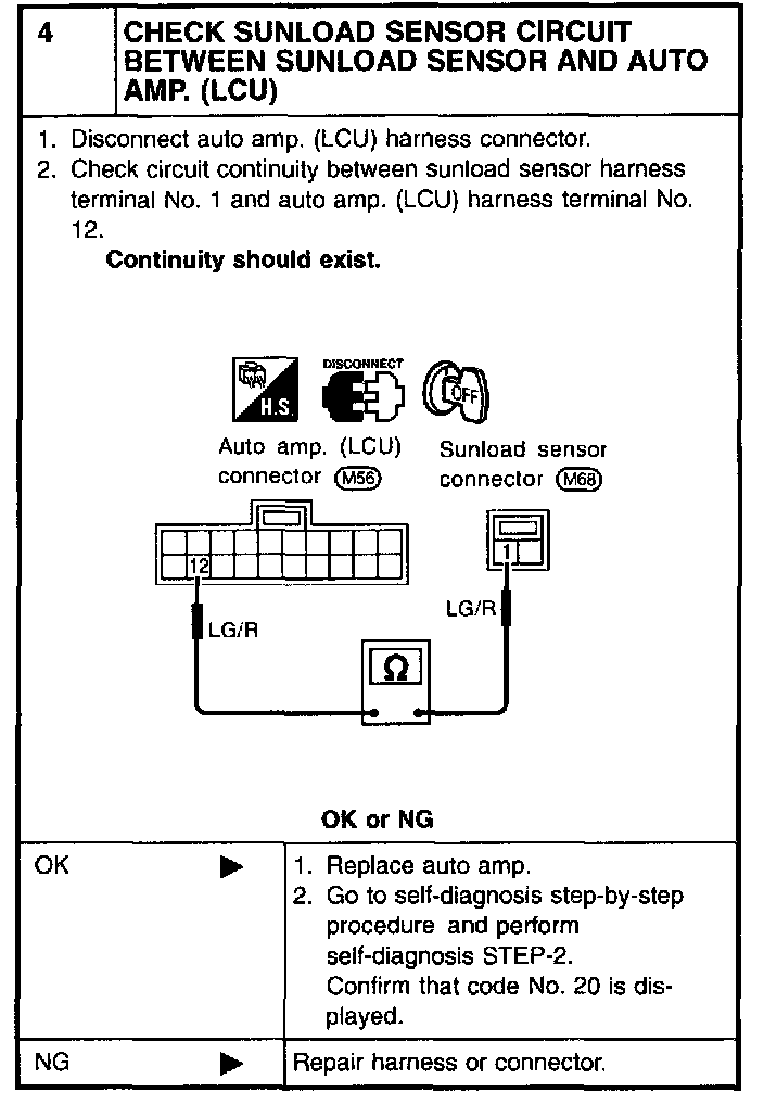 4. Check Sunload Sensor Circuit Between Sunload Sensor And Auto Amp.(LCU)
