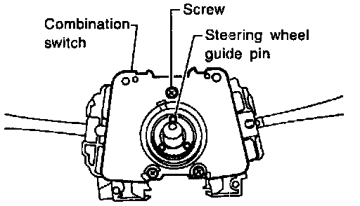 ^ Before installing the steering wheel, align the steering wheel guide pins with the screws which secure the combination switch as shown in the image.