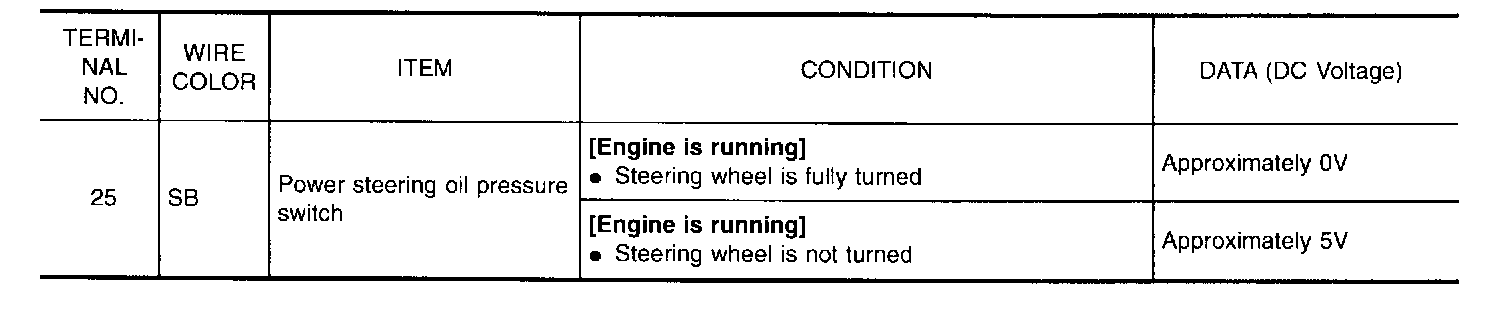 1. Disconnect power steering oil pressure switch harness connector then start engine.