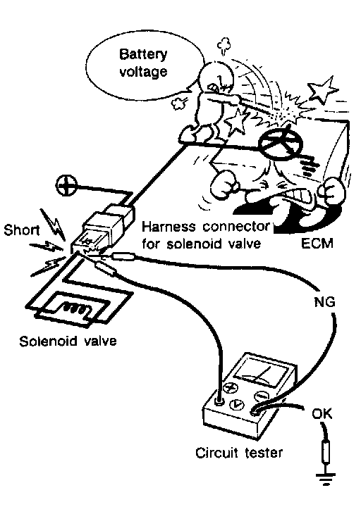 Accidental contact of probes will cause a short circuit and damage the ECM power transistor.