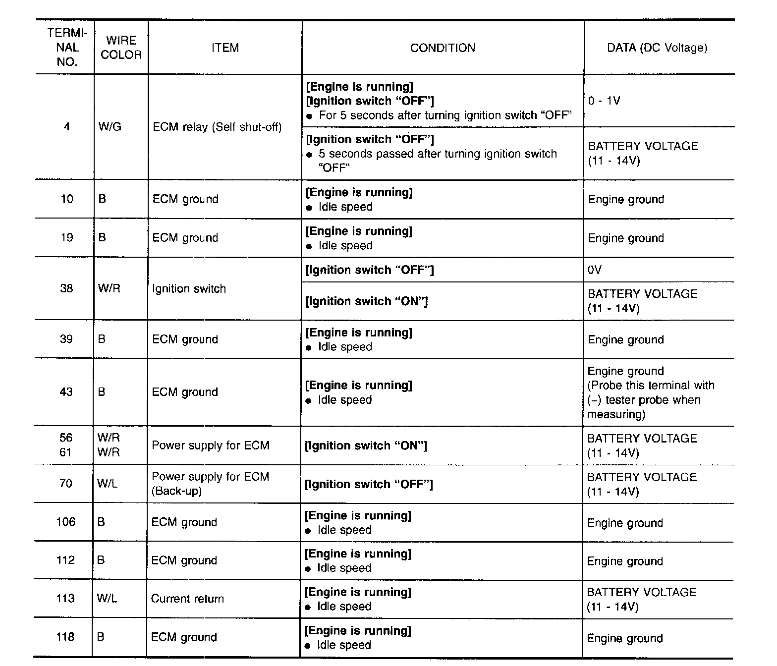 Specification data are reference values and are measured between each terminal and 43 (ECM ground) .