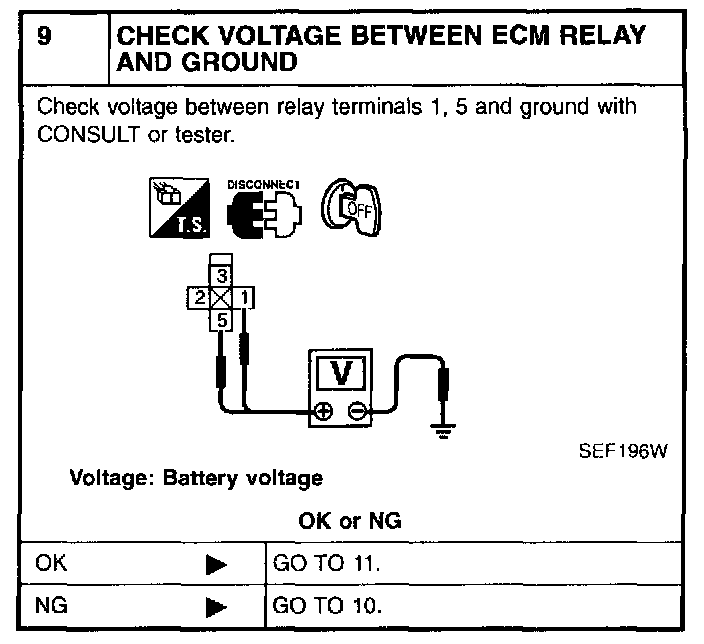 9 CHECK VOLTAGE BETWEEN ECM RELAY AND GROUND: