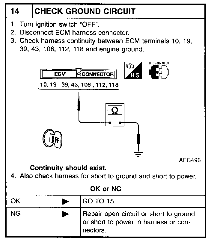 7 CHECK HARNESS CONTINUITY BETWEEN ECM RELAY AND ECM: