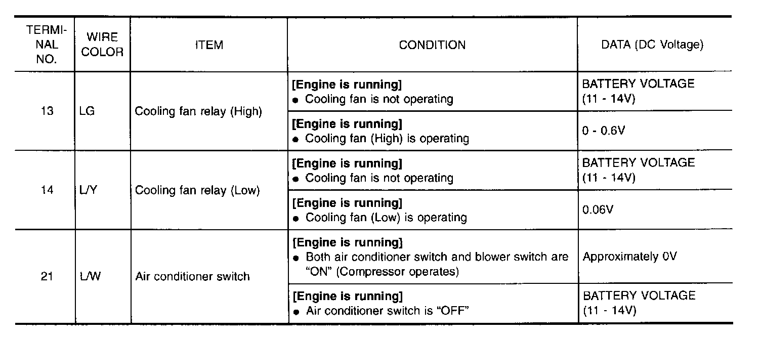 Specification data are reference values and are measured between each terminal and 43 (ECM ground).