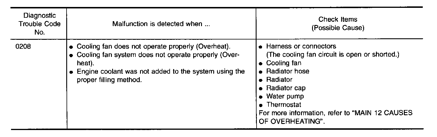 If the cooling fan or another component in the cooling system malfunctions, engine coolant temperature will rise.