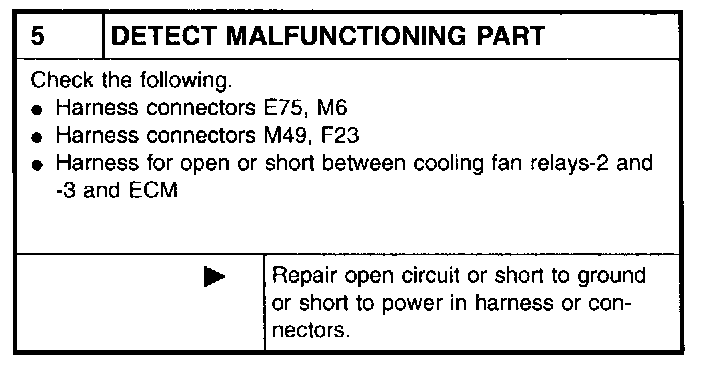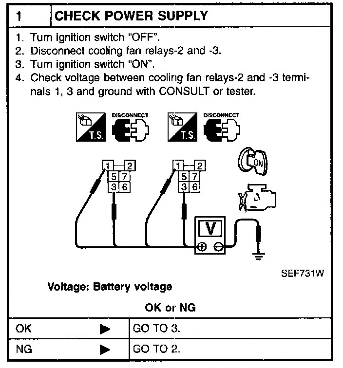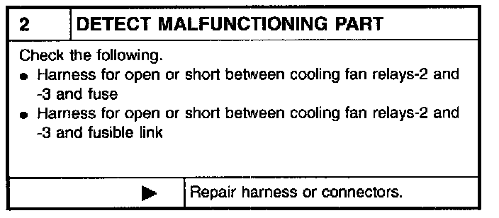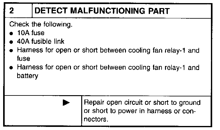 2. Supply cooling fan motor terminals with battery voltage and check operation.