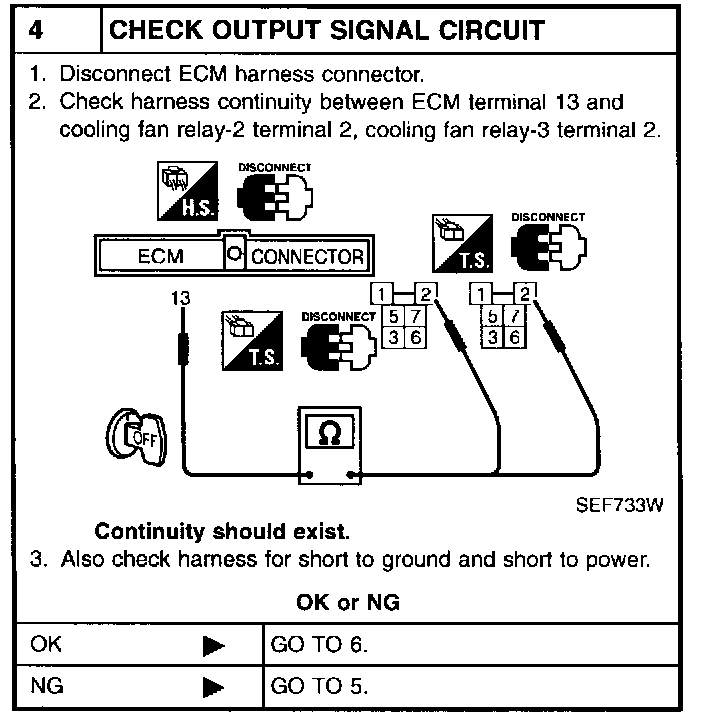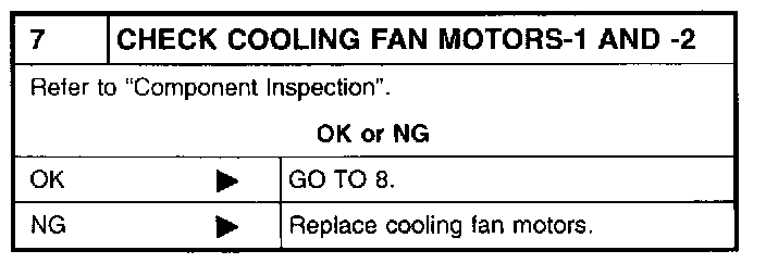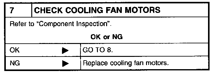 If NG, replace cooling fan motor.