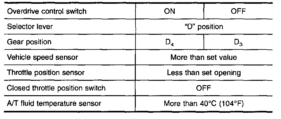 ^ The line pressure is reduced below 60°C (140°F) to prevent shifting shock due to low viscosity of automatic transmission fluid when temperature is low.