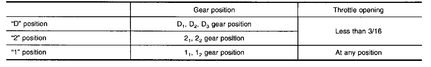 When vehicle is driven in 4th gear position, vehicle speed and throttle opening are detected. If the detected values fall within the lock-up zone memorized in the TCM lockup is Performed.