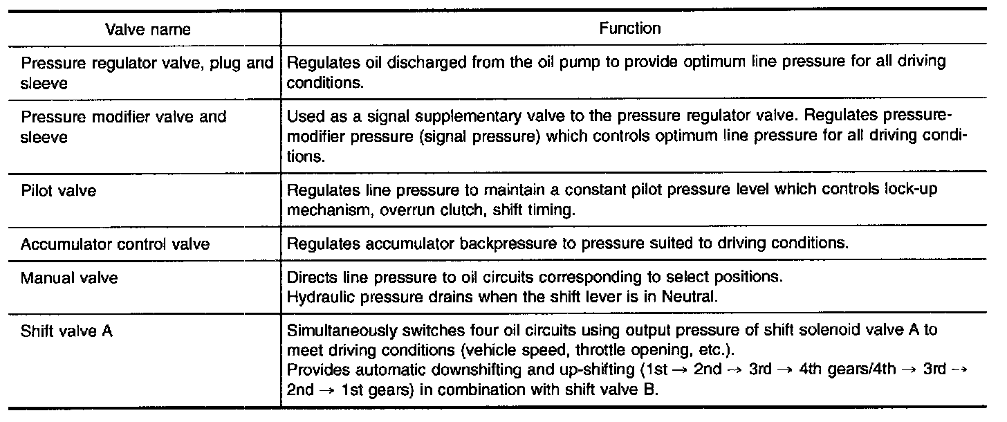 Hydraulic pressure on the clutch and brake is electronically controlled through the line pressure solenoid valve to accommodate engine torque. This results in smooth shift operation.