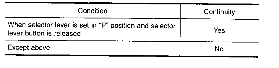 With the key switch turned to ON, the selector lever cannot be shifted from "P" (parking) to any other position unless the brake pedal is depressed.