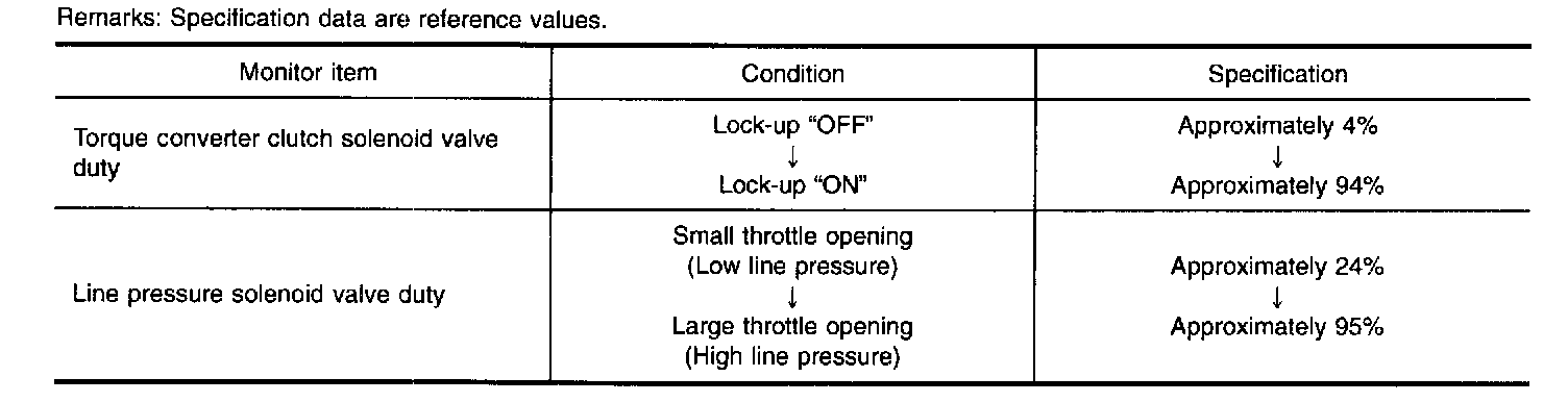 1. Start engine and select "DATA MONITOR" mode for "A/T" with CONSULT.
