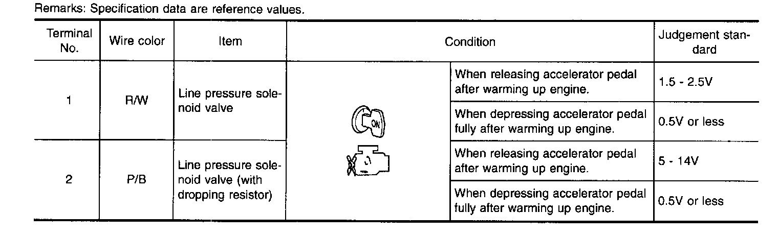7 CHECK LINE PRESSURE SOLENOID VALVE: