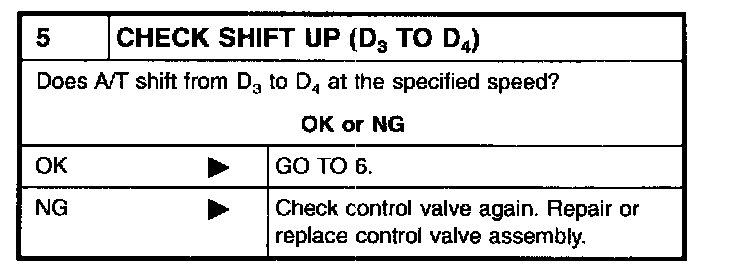 - Check that "GEAR" shows "4" when depressing accelerator pedal with 1/8 - 2/8 of "THROTTLE POSI".