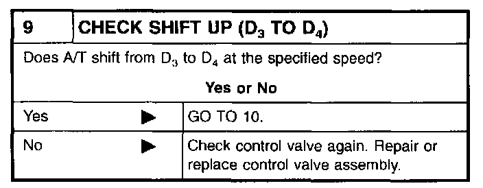 7. Follow the instruction displayed. (Check for normal shifting referring to the table below.)