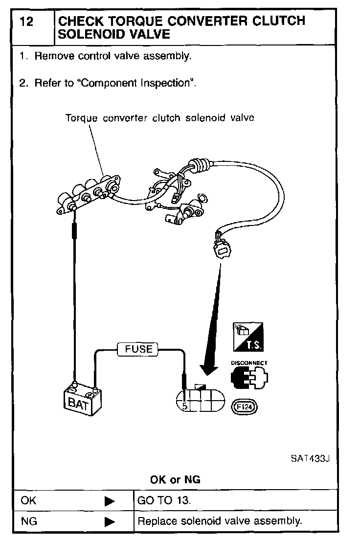 12 CHECK TORQUE CONVERTOR CLUTCH SOLENOID VALVE: