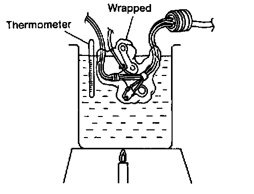 - Check resistance between two terminals while changing temperature as shown at left.