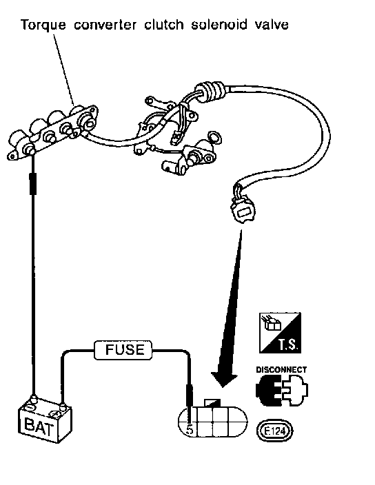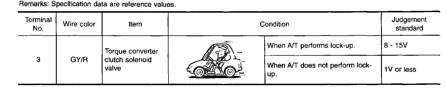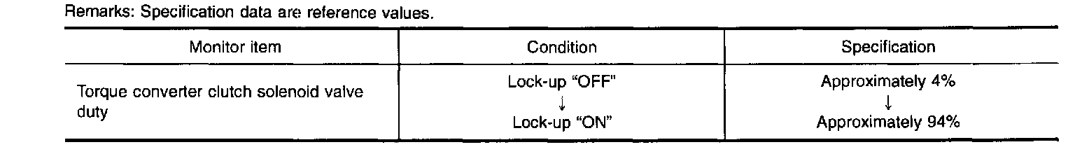 The torque converter clutch solenoid valve is activated, with the gear in "D4", by the TCM in response to signals sent from the vehicle speed and throttle position sensors. Lock-up piston operation will then be controlled.
