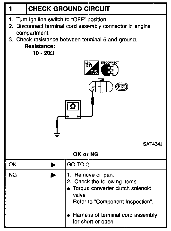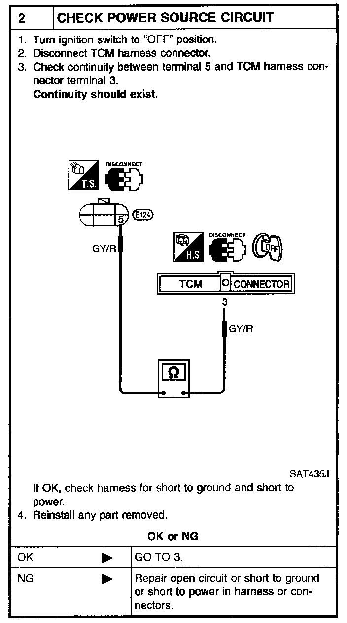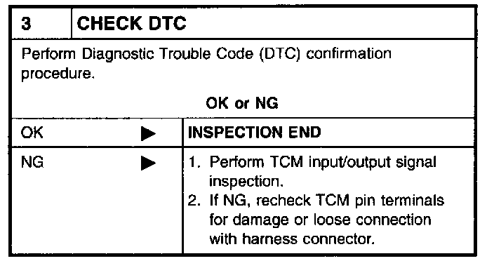 NOTE: If "DIAGNOSTIC TROUBLE CODE CONFIRMATION PROCEDURE" has been previously conducted, always turn ignition switch "OFF" and wait at least 5 seconds before conducting the next test.