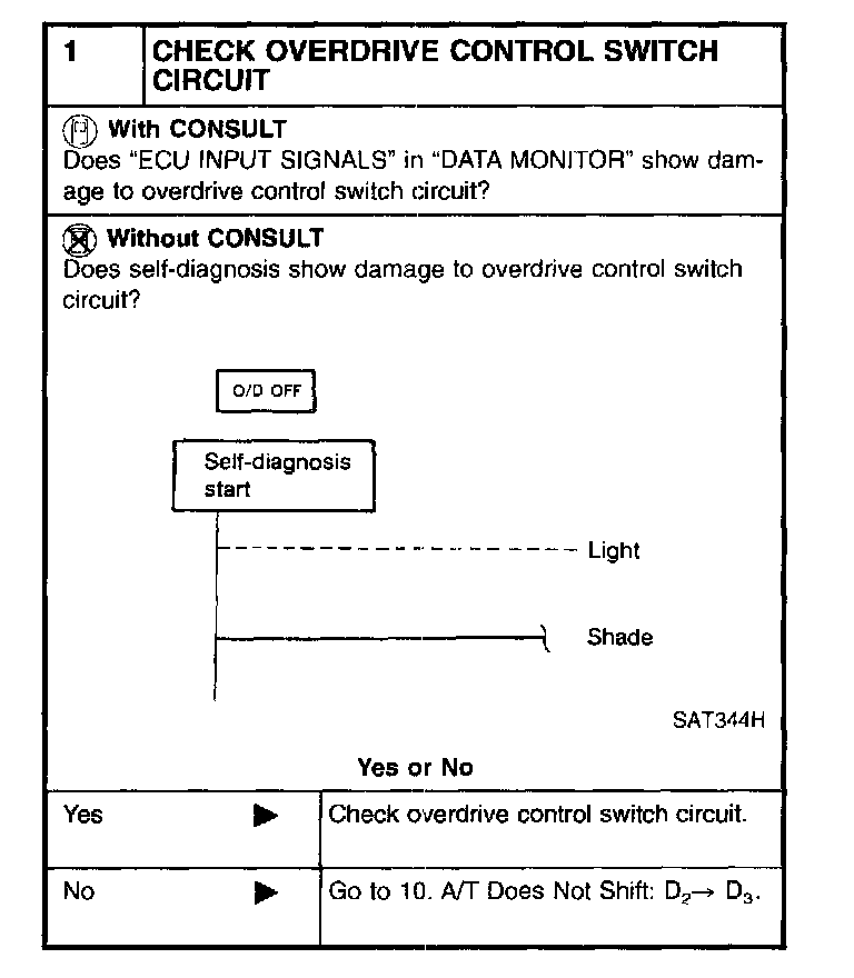 SYMPTOM: A/T does not shift from D4 to D3 when changing overdrive control switch to "OFF" position.