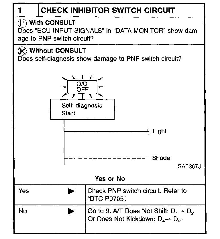 SYMPTOM: A/T does not shift from D(3) to 2(2) when changing selector lever from "D" to "2" position.