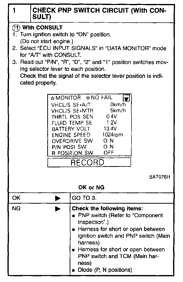 6. If NG on step 4, replace PNP switch.