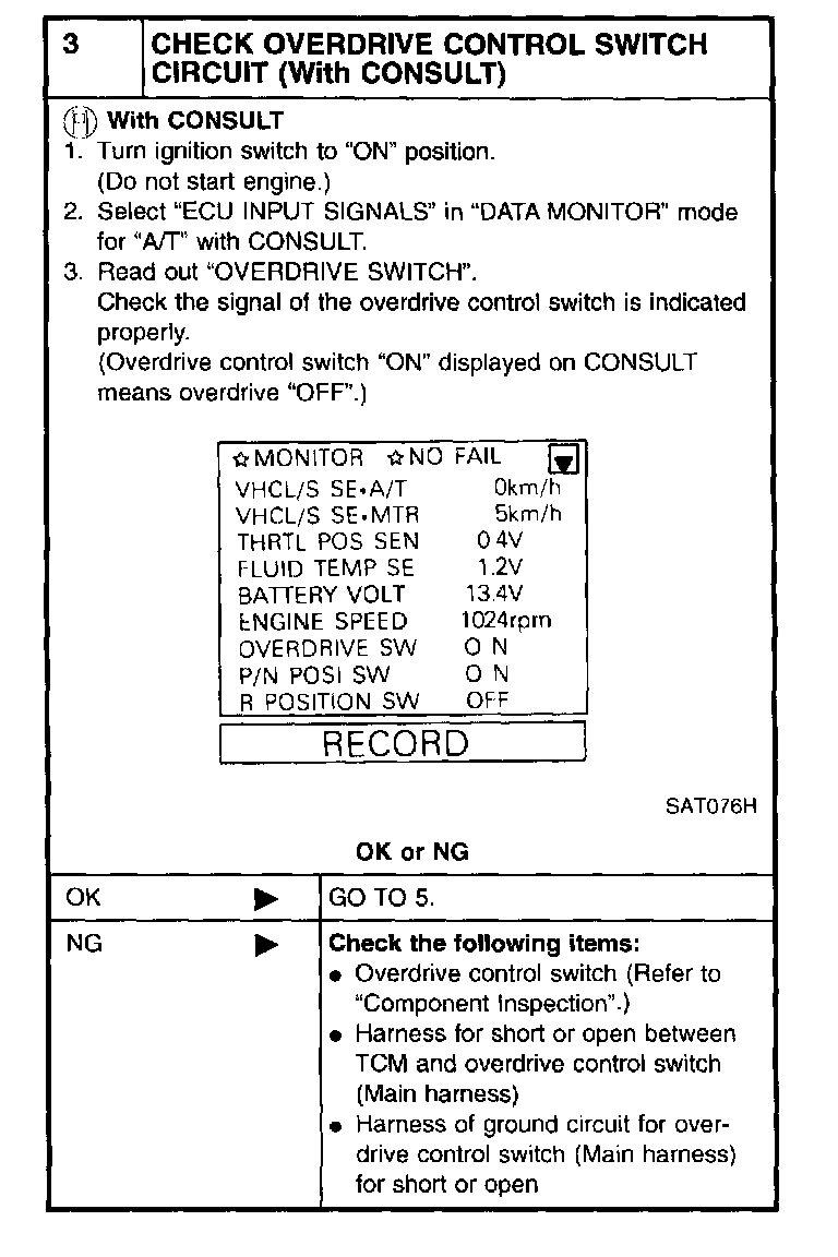 21. TCM Self-diagnosis Does Not Activate (PNP, Overdrive Control and Throttle Position Switches Circuit Checks)