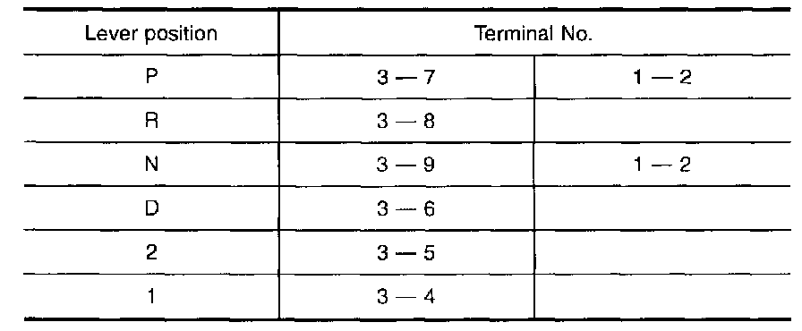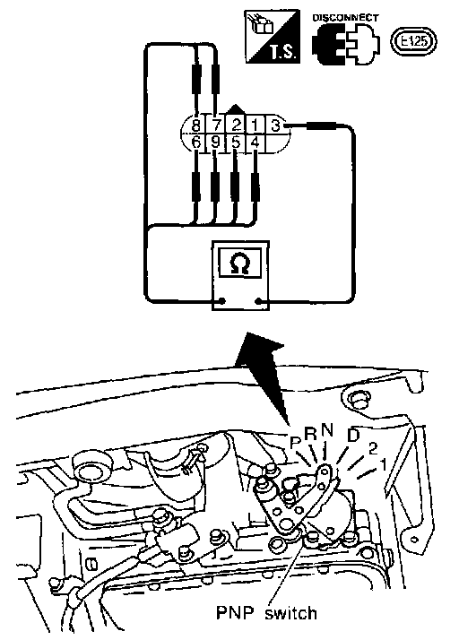 4. If NG on step 2, remove PNP switch from A/T and check continuity of PNP switch terminals.