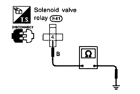 - Check resistance between solenoid valve relay terminal 4 and ground.