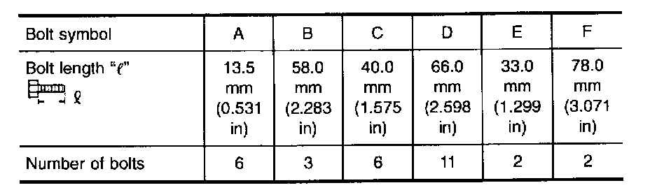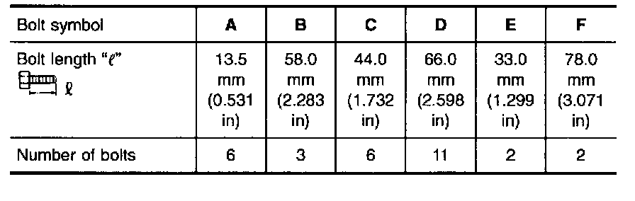 3. Install and tighten bolts. Bolt length, number and location: