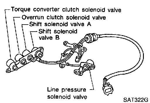 Shift Solenoid Valves A and B. Line Pressure Solenoid valve, Torque Converter Clutch Solenoid Valve and Overrun Clutch Solenoid Valve
