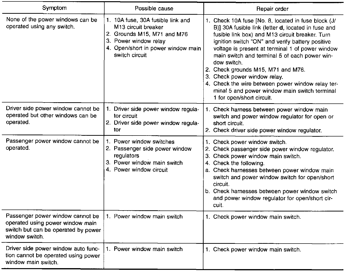Trouble Diagnoses Chart
