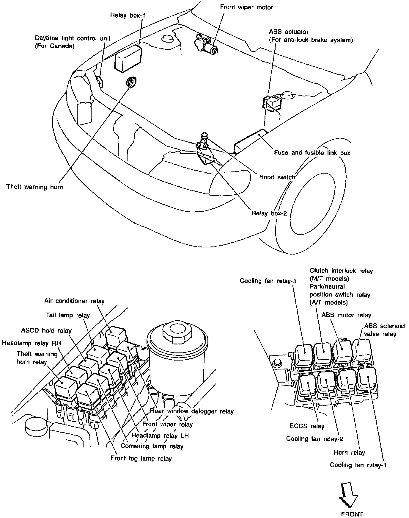 Main Relay (Computer/Fuel System): Locations