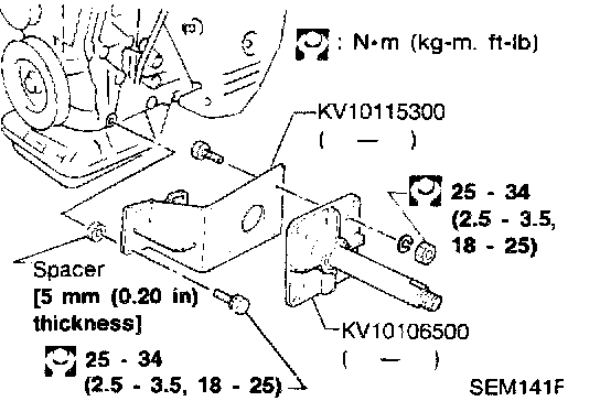 d. Tighten all bolts to 33 to 38 Nm (3.3 to 3.9 kg-m, 24 to 28 ft. lbs.).