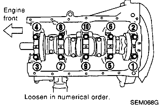 6. Remove main bearing cap and crankshaft as shown.