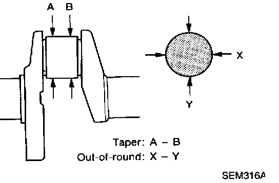 2. With a micrometer, measure journals for taper and out-of-round.