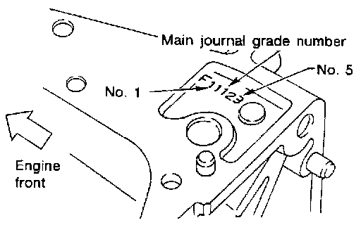 ^ If incorrect bearing clearance exists, use a thicker or undersized main bearing to ensure specified clearance.