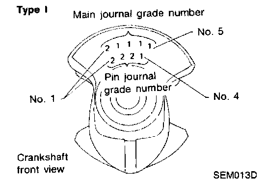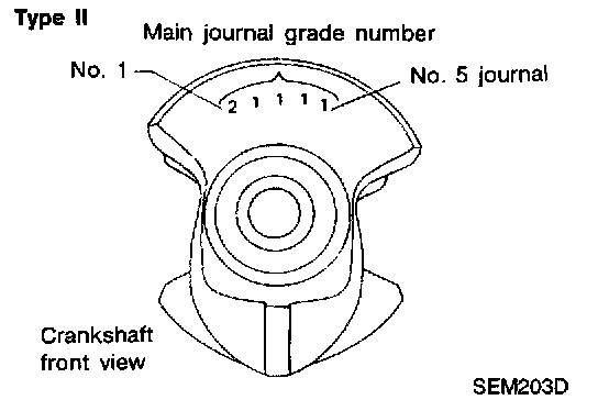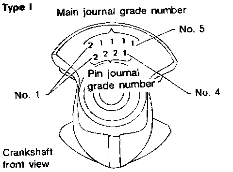 ^ If clearance cannot be adjusted within the standard of any bearing, grind crankshaft journal and use undersized bearing.