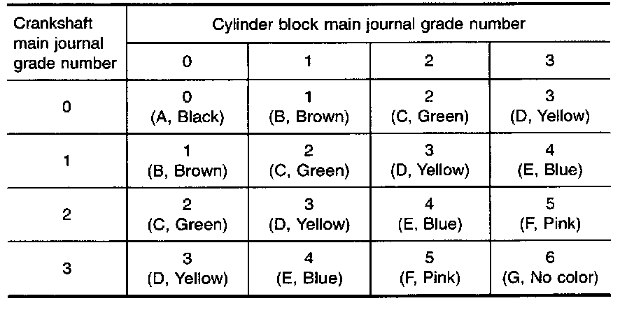 ^ If crankshaft is replaced with a new one, select connecting rod bearing according to the following table.