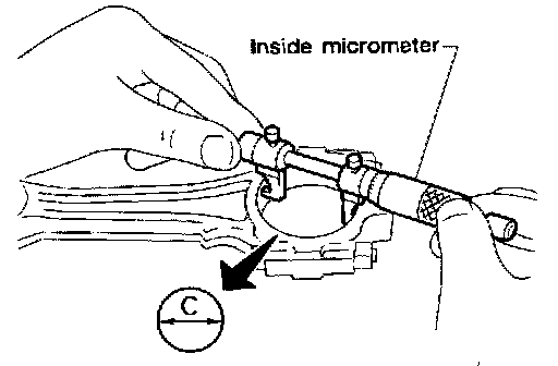 Piston-to-bore clearance = bore measurement "C" - piston diameter "A": 0.010 - 0.030 mm (0.0004 - 0.0012 inch)