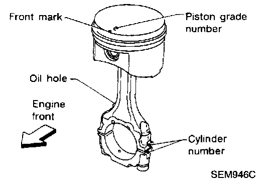 ^ If cylinder block and piston are replaced, match piston grade with grade number on cylinder block upper surface.