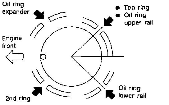 3. Set piston rings as shown.