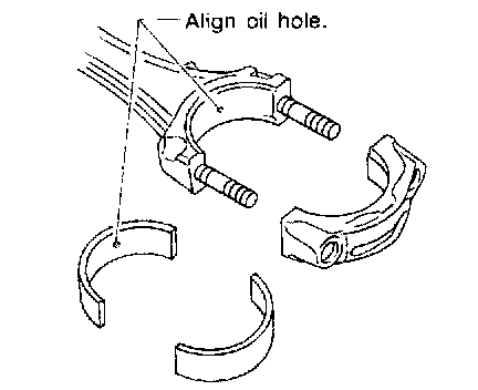 ^ Install bearings so that oil hole in connecting rod aligns with oil hole of bearing.