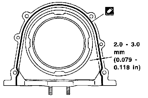 b. Apply a continuous bead of liquid gasket to mating surface of rear oil seal retainer.