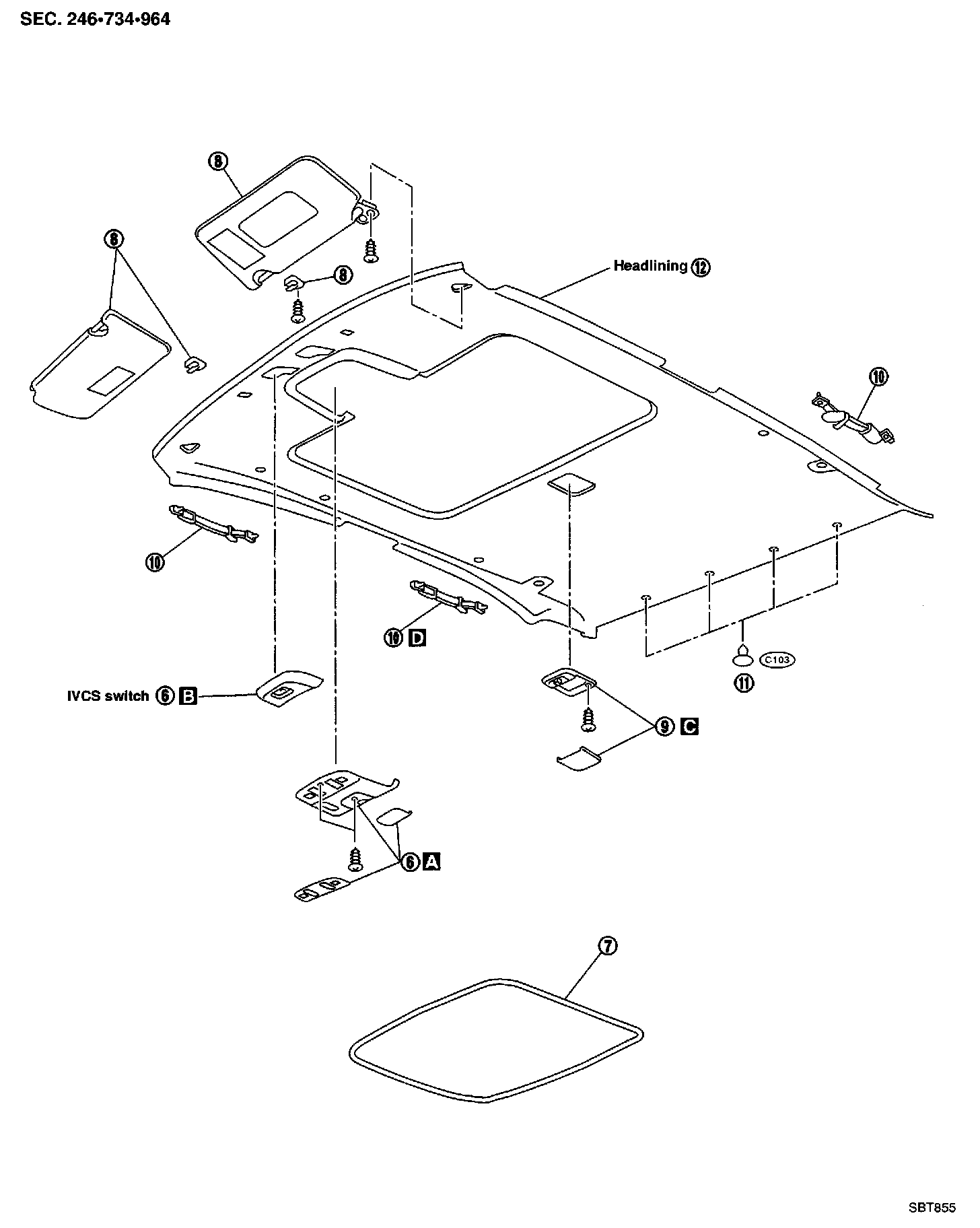 6. Remove sunroof switch or spot lamp switch and IVCS switch.[A] [B]
