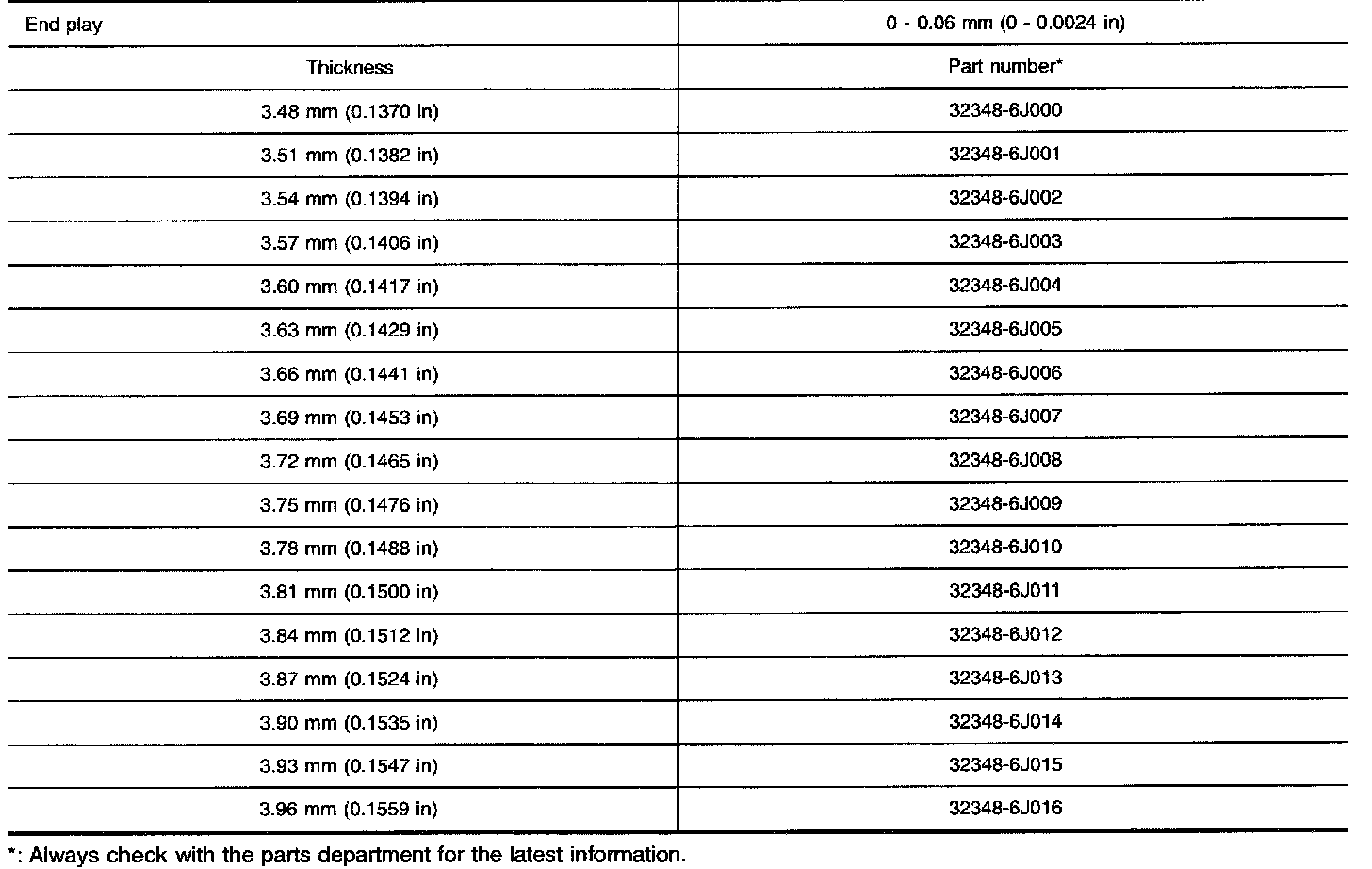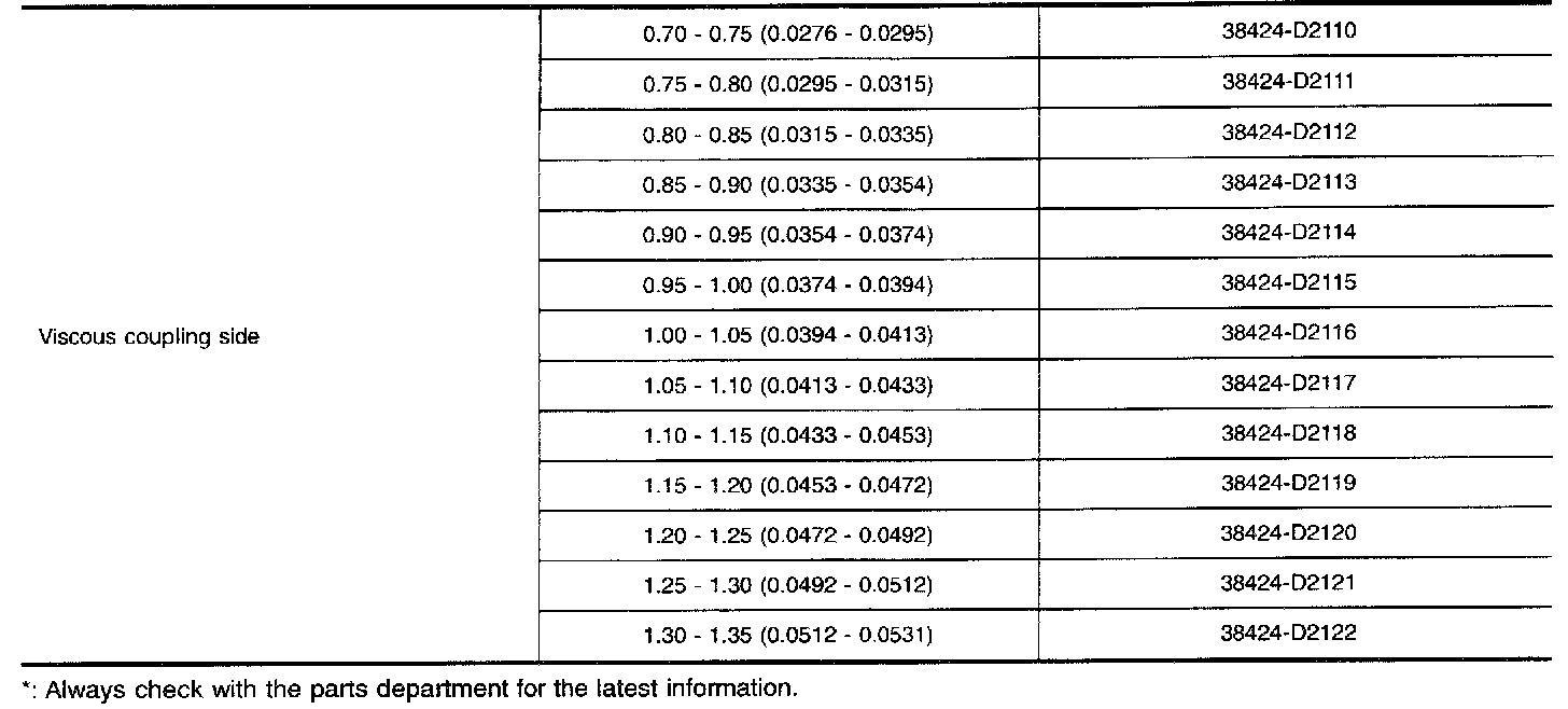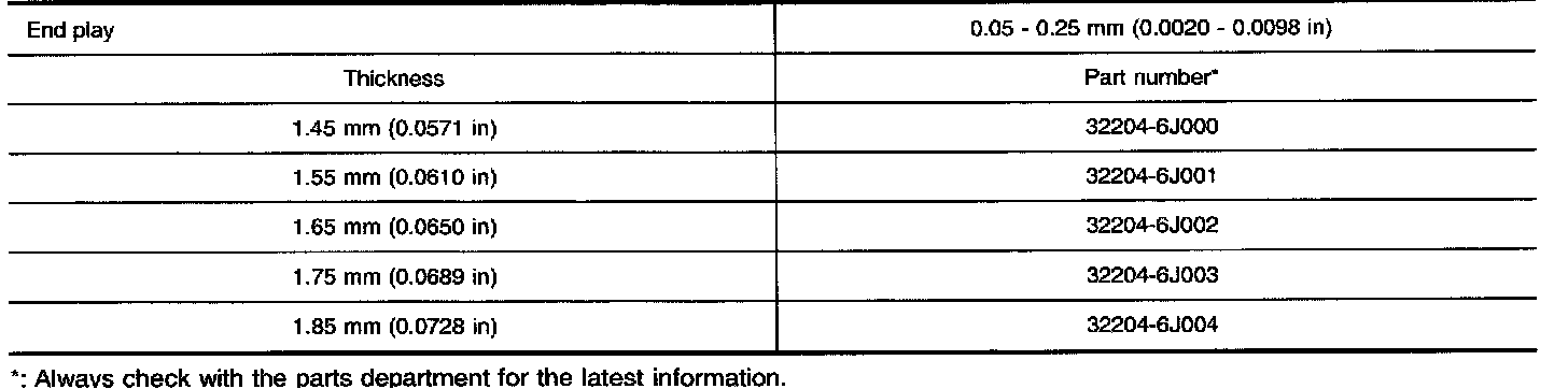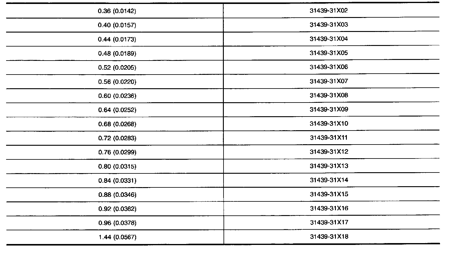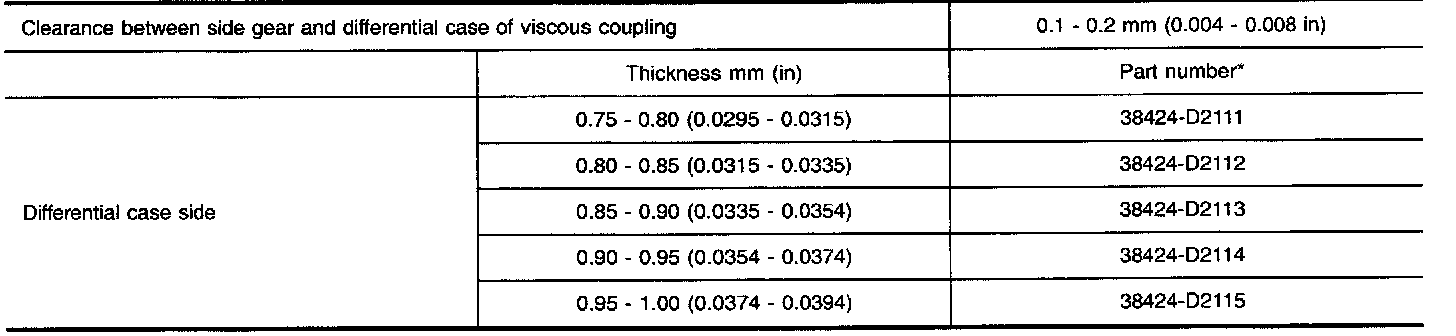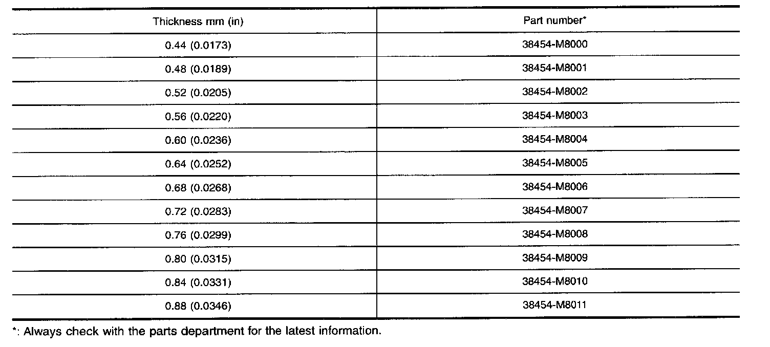 AVAILABLE SHIMS - DIFFERENTIAL SIDE BEARING PRELOAD AND ADJUSTING SHIM