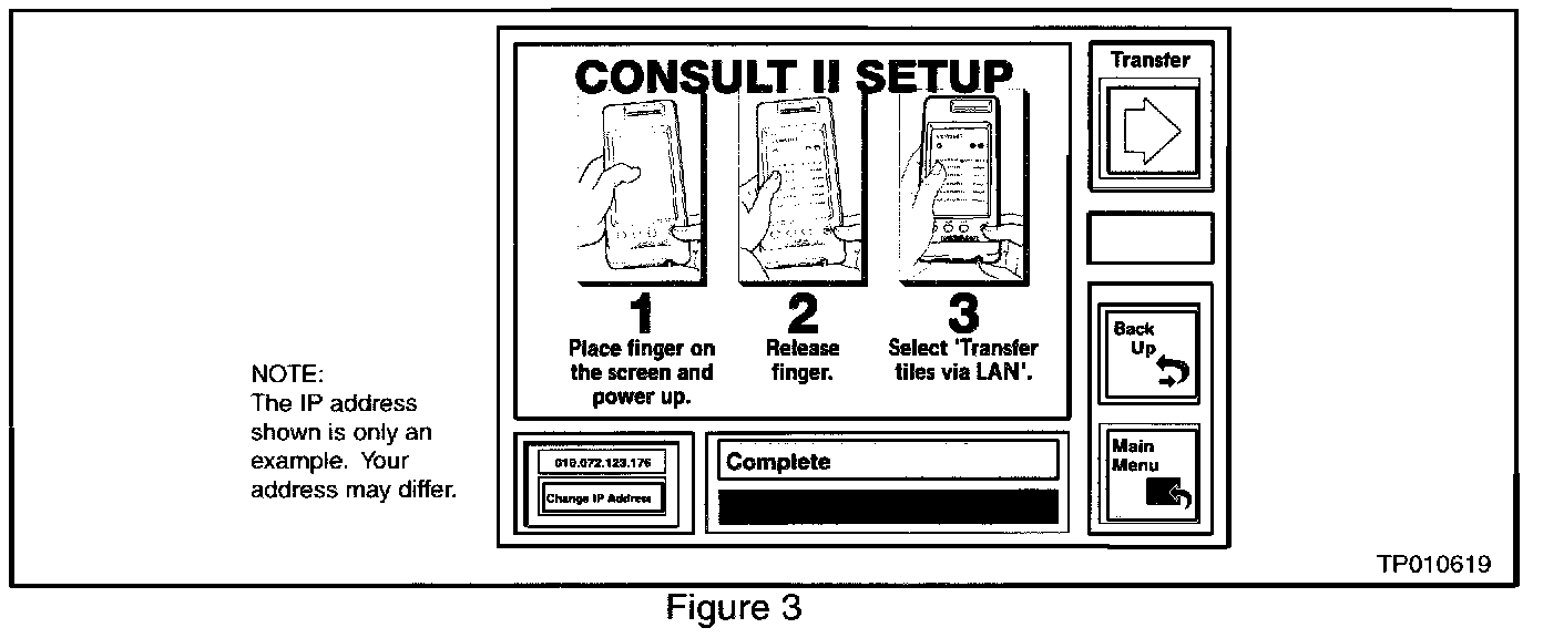 11. When transfer is complete select the "Main Menu" button on ASIST. Turn off CONSULT-II and disconnect the AC power cord and the Ethernet cable from CONSULT-II.