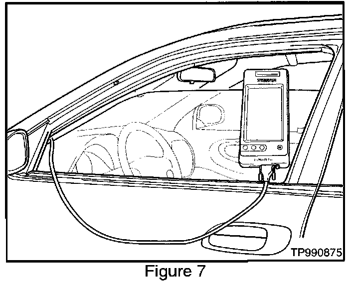 35. Roll down the driver's window part way, exit the vehicle, close the door and hang the CONSULT-II unit on the outside of the window (see Figure 7).
